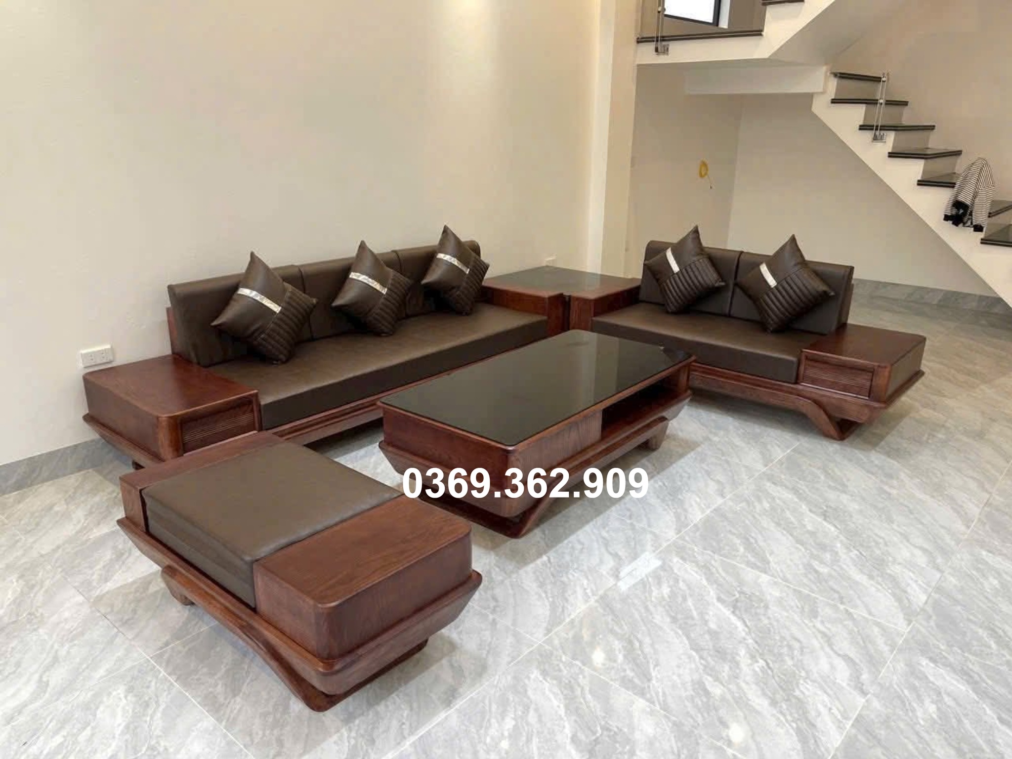 2. Chất liệu: Bộ salon được làm bằng 100% Sồi nga nhập khẩu.